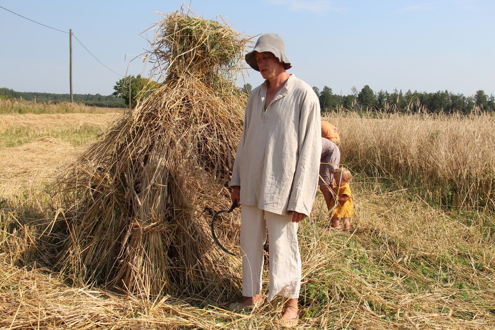 Rehealuse mõnusat muldpõrandat meil ei olnud, kuid vaip muruplatsil ajas samuti asja väga hästi ära. Ainult terad kippusid üle ääre lendama. Seepärast proovisime rukkist ka otsapidi riidest kottidesse toppida, et terad paigale jääksid. Viljapead tühjad, oli aeg vili kõrtest ning aganatest eraldada. Sõelusime jämeda ja peenikese sarjaga, jätkasime käsitööga kallates vilja ühest anumast teise, lootes et tuul kannab üleliigsed ebemed kõrvale, ning lõpetasime ehtsa näputööga purukesi pihkudelt puhudes ja ükshaaval välja noppides.