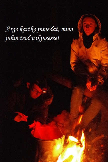 Suur vannitäis kartulisalatit on põrandal, teine kausitäis makaronidega laua peal. Kristi ja Pallike riivivad kahekesi ühte porgandit, ahjus küpsevad pirukad ja kaks viieteistkümnest koogipõhjast, kuni Miina valmistab ette juba järgmised. Lea pani kasvama beebitaigna, Keily raputab kaneeli, Liisi hoiab saiakestel silma peal. Linda ja Ott meenutavad Siberi ekspiditsiooni ja arutavad, mida rääkida, mida mitte. Mirjam ja Kaarel arutlevad filosoofilistel teemadel, Helena on ametis pildistamisega. Robin hakkis kausitäie sibulat, kartulit, kurki ja lasi jalga. Kelligi käib meid aegajalt külastamas ja jõudu soovimas. Aidaraamatus seisab 13 nime ning õhtu jätkub tegusalt.