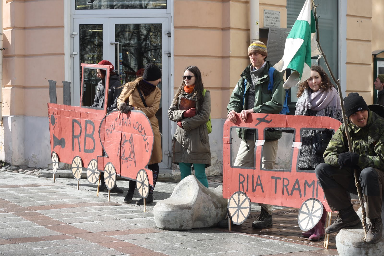 Aktsiooniks ehitasime rongi, millega takistasime inimeste voogu Rüütli tänava otsas nagu seda teeks looduses kavandatav raudteetrass metsloomade suhtes. Rongil olid vagunid, millel Rail Baltic hakkaks transportima inimesi ja tarnima kaupu. Jätsime vedurijuhi akna tühjaks, et tahtjad saaksid endast vedurijuhina pilti teha. Kes aga tahaks sellise rongi vedurijuht olla? Tuli välja, et enamik möödakõndijatest seda meelepäraseks ei pidanud. Oli see siis paremate tööperspektiivide pärast või tekkis neil päriselt põhimõtteline vastuolu, ei tea. Kohtasime vaid paari inimest, kes said pahaseks, et nende teed takistasime või kes arvasid, et peaksime koju minema, sest et “see on juba otsustatud, inimesi ei kuula ju enam keegi”.