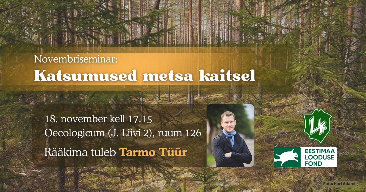 Kätte on jõudnud aeg põnevaks novembrikuu seminariks! Seekord tuleb rääkima ELFi juhatuse esimees Tarmo Tüür. Seminari teemaks on „Katsumused metsa kaitsel“, kus tuleb juttu Eesti metsade raiemahust (30/70 eelnõu) ja sellest, kuidas see mõjutab meie metsi.