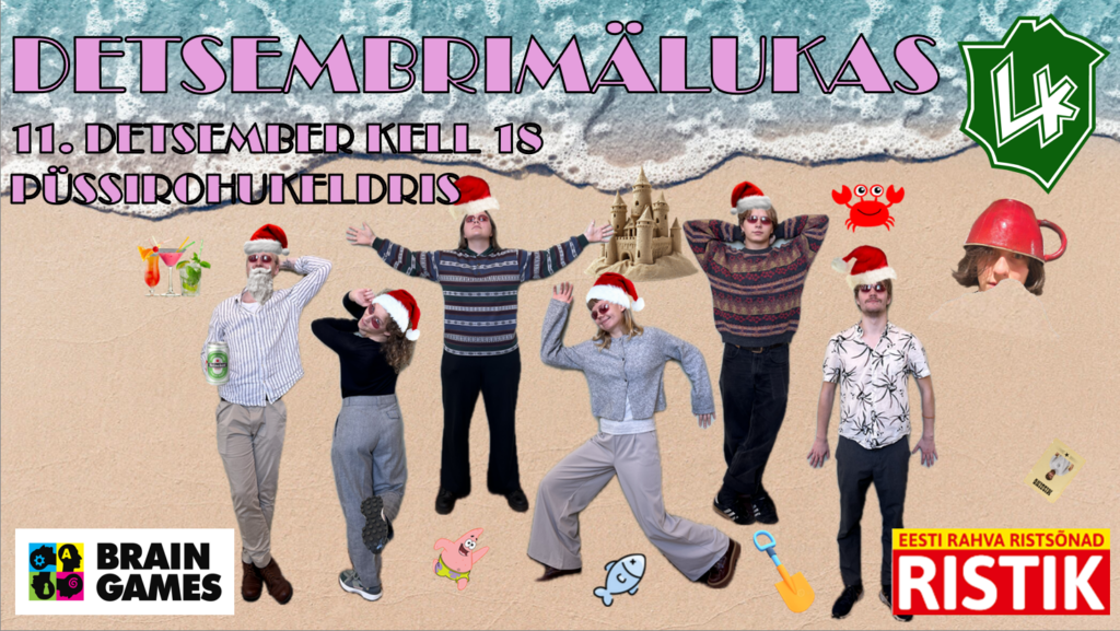 Pane ennast kirja siin: https://docs.google.com/spreadsheets/d/1CBS64zkxDFVUBrnq7DCJQM1Hx5rIhkudSpohJTeqOJk/edit?usp=sharing
